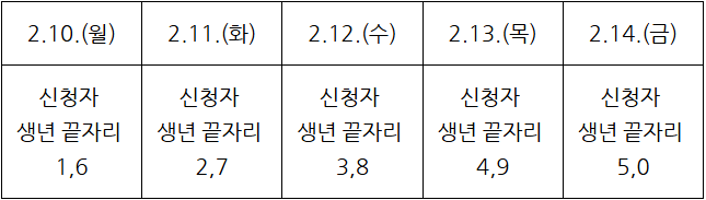 5부제 운영 기간 ▶ 2. 10.(월) ~ 2.14.(금)