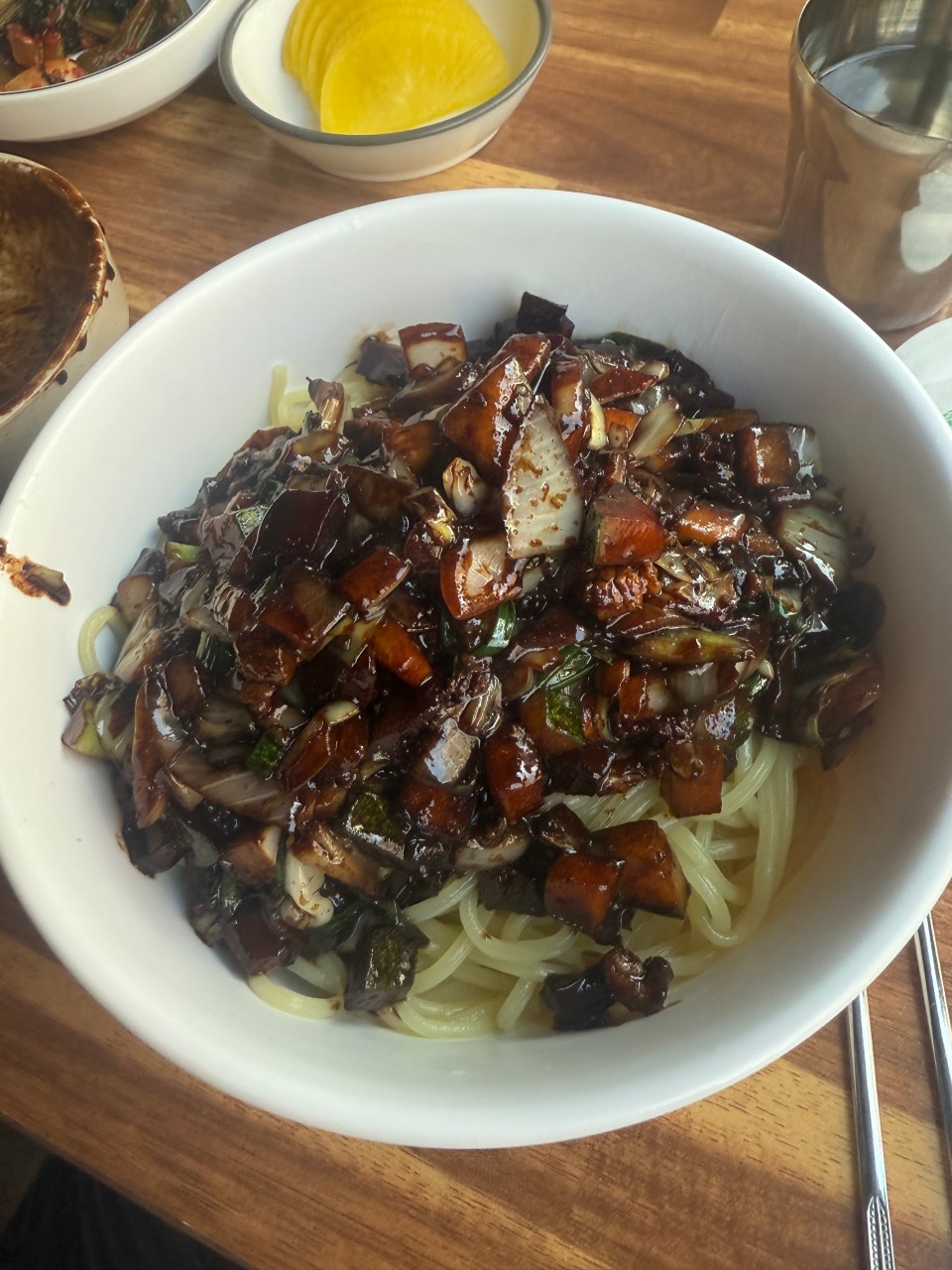 - 잡채밥의 황금비율: 달인의 잡채밥은 쫄깃한 당면과 알맞게 볶아낸 채소가 조화롭습니다. 밥과 잡채의 비율이 완벽해 따로 양념을 더하지 않아도 최상의 맛을 제공합니다.